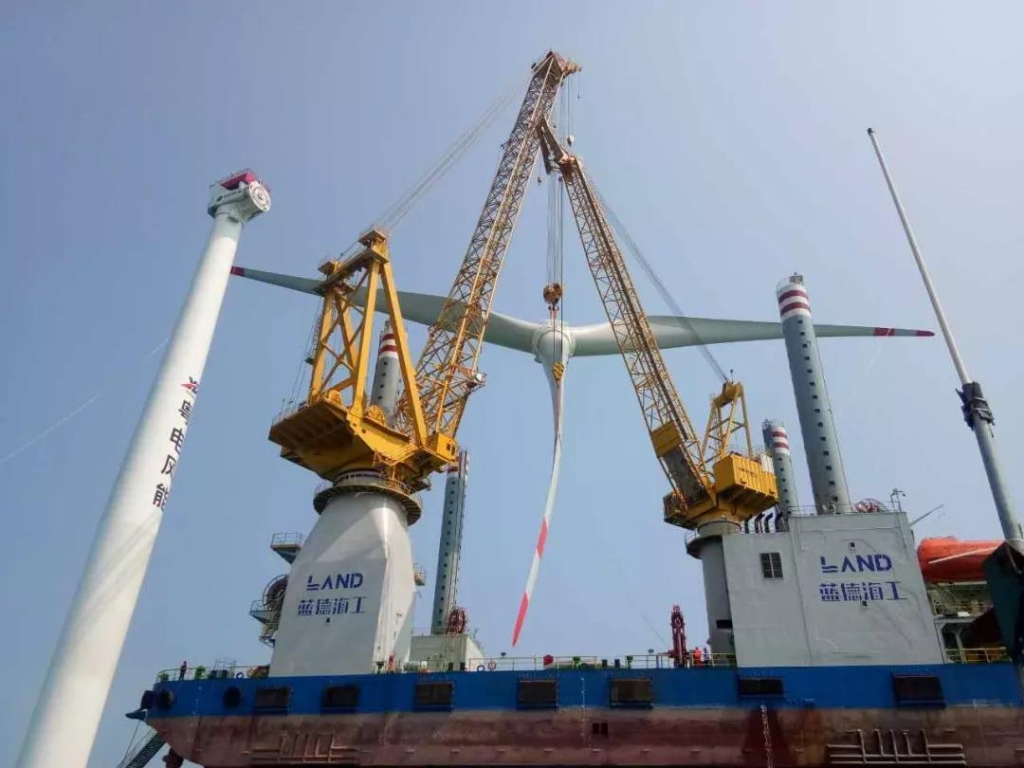 Considering the operation environment, Hengtong studied the working condition, and continuously optimized the construction scheme. Then developed facilities including single-blade hangers, tooling to improve the efficiency and safety of offshore fan hoisting, effectively ensure the installation accuracy and construction progress, and successfully complete the first fan installation.